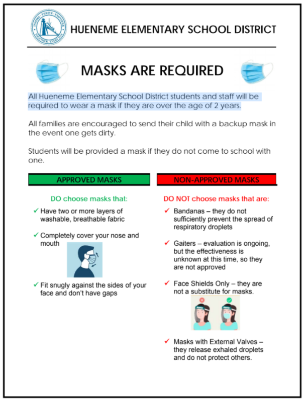 All Hueneme Elementary School District students and staff are required to wear a mask.